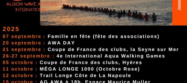 Les grandes dates de l’AGENDA AWA de septembre à décembre 2025. Et une AG programmée le 15 octobre à 18h à l’Espace Maurice Muller
