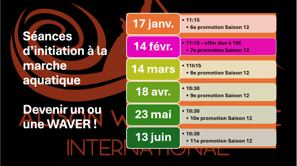 – Initiations à la marche aquatique encadrées par des moniteurs de la FFRANDONNEE avec matériel fourni à 10h, 11h, 13h, 14h : 10€