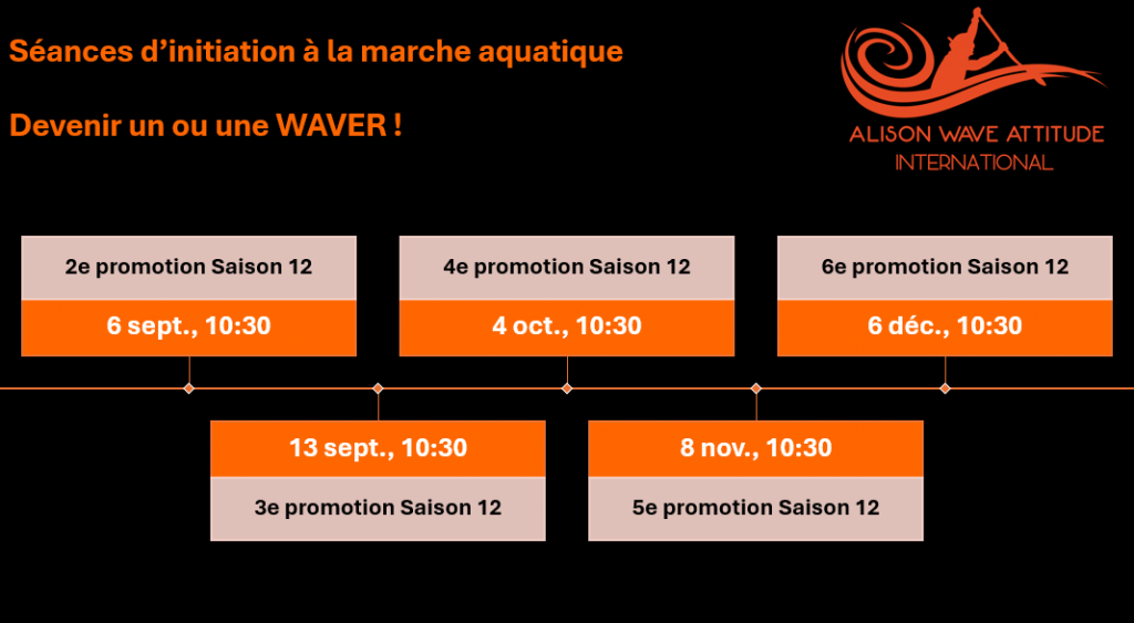 Planning hebdomadaire de séances et initiations à la marche aquatique 31 août 2025Actualité, Initiations, Planning sorties, Sport santé, Vie des clubsalison-admin Un planning hebdomadaire de séances très dense et des initiations à la marche aquatique : devenez un ou une WAVER toute l’année